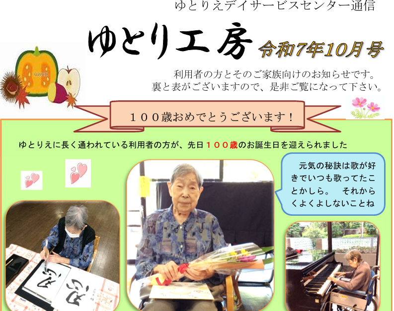 ゆとりえデイサービスセンター通信「ゆとり工房」令和7年10月号を発刊しました。