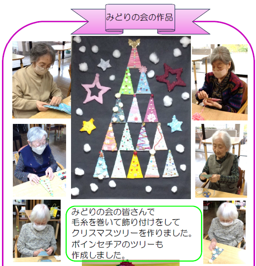 今月号はクリスマスにちなんだ工作を皆さんと行いました。