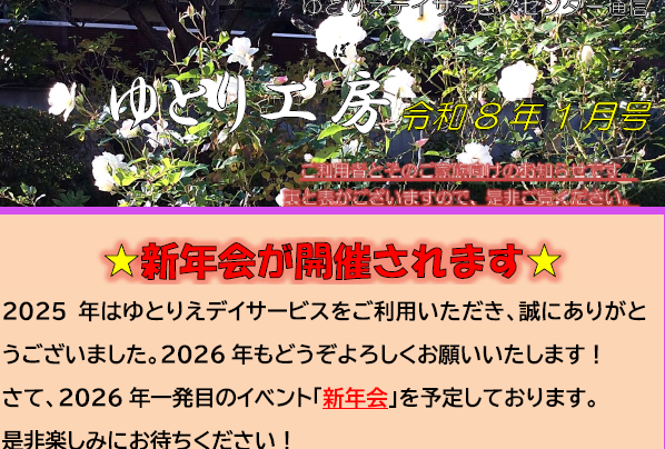 ゆとりえデイサービスセンター通信「ゆとり工房」令和8年1月号を発刊しました。